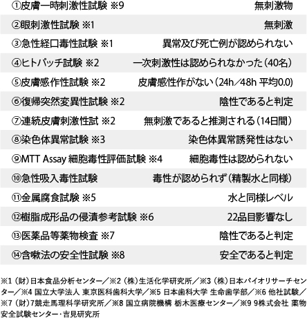 金属腐食試験などの結果は、水と同等レベル -
